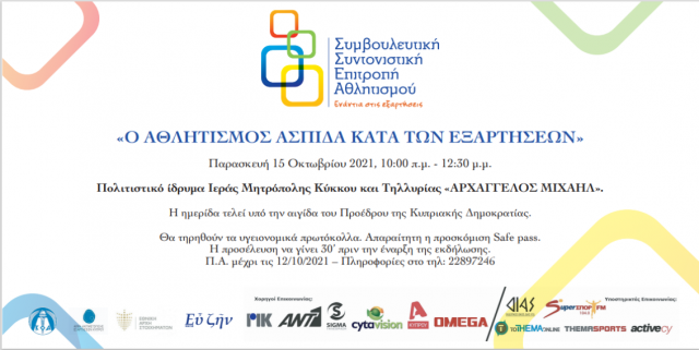 Η Συμβουλευτική Συντονιστική Επιτροπή Αθλητισμού ενάντια στις εξαρτήσεις διοργανώνει στις 15 Οκτωβρίου 2021 Συνέδριο με θέμα «Ο Αθλητισμός ασπίδα κατά των Εξαρτήσεων». Το Συνέδριο τελεί υπό την αιγίδα του Προέδρου της Δημοκρατίας και ο Πρόεδρος της ΑΑΕΚ, Δρ. Χρίστος Μηνά, θα πραγματοποιήσει παρουσί...