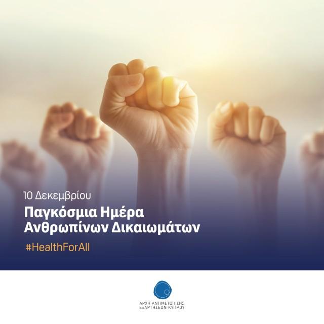 Η Αρχή Αντιμετώπισης Εξαρτήσεων Κύπρου (ΑΑΕΚ), δέχεται προτάσεις με στόχο την ανάπτυξη Προγράμματος για παροχή υπηρεσιών Κοινωνικών Λειτουργών στα εγκεκριμένα από την ΑΑΕΚ Θεραπευτικά Προγράμματα Παγκύπρια. Σκοπός του εν λόγω Προγράμματος είναι η παροχή υπηρεσιών κοινωνικών λειτουργών προς τα ε...Παγκόσμια Ημέρα Ανθρωπίνων Δικαιωμάτων, 10 Δεκεμβρίου 2024