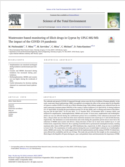 Στις 12-16 Σεπτεμβρίου πραγματοποιήθηκε στην Πολωνία εκπαίδευση των εκπαιδευτών (Training of Trainers) στο Ευρωπαϊκό πρόγραμμα εφαρμογής προληπτικών παρεμβάσεων με τα κριτήρια ΕυΠρο (EUPC) που αναπτύχθηκαν από ειδικούς στο Ευρωπαϊκό Κέντρο Παρακολούθησης Ναρκωτικών και Τοξικομανίας (EMCDDA). Με την...«Wastewater-based monitoring of illicit drugs in Cyprus by UPLC-MS/MS: The impact of the COVID-19 pandemic»