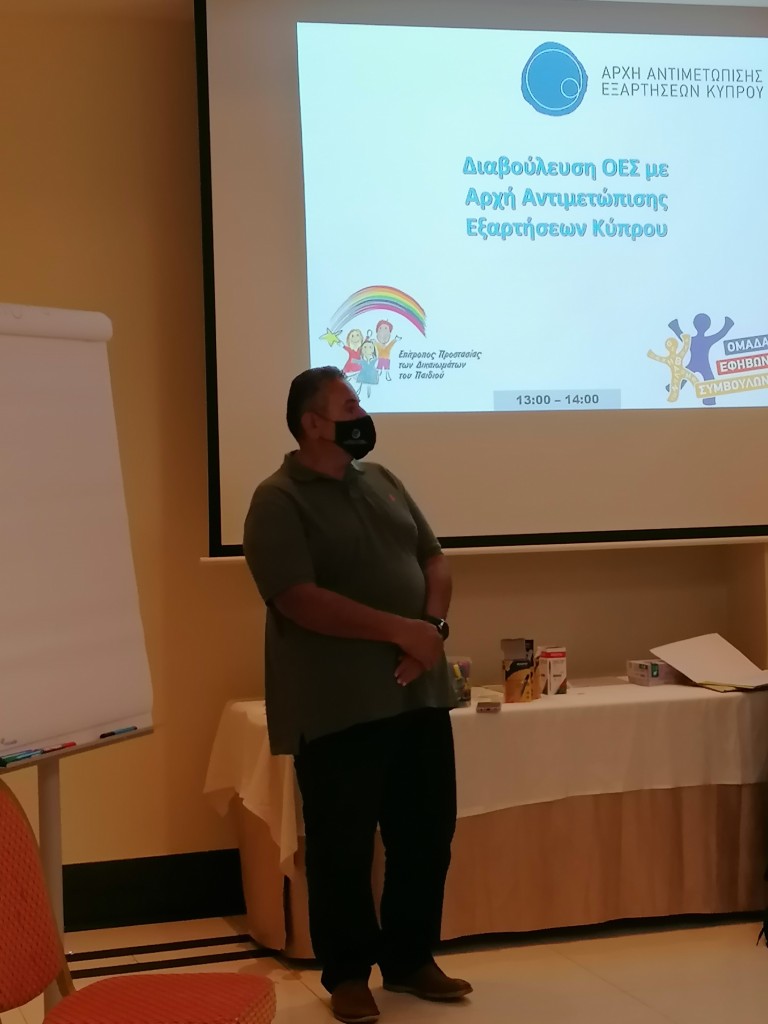 Πραγματοποιήθηκε στις 7 Οκτωβρίου 2021 η 5η Συνάντηση -Διαβούλευση της Ομάδας Εφήβων Συμβούλων ΟΕΣ, με θέμα το κάπνισμα, με την Επίτροπο Προστασίας των Δικαιωμάτων του Παιδιού κ. Δέσπω Μιχαηλίδου, και τον Πρόεδρο της Αρχής Αντιμετώπισης Εξαρτήσεων Κύπρου ΑΑΕΚ Δρ. Χρίστο Μηνά.