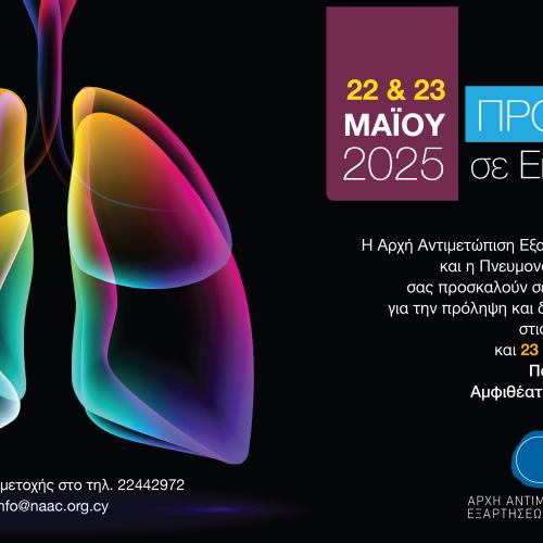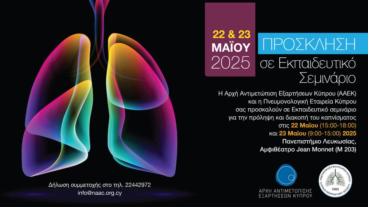 Η Αρχή Αντιμετώπισης Εξαρτήσεων Κύπρου (ΑΑΕΚ) και η Πνευμονολογική Εταιρεία Κύπρου, διοργανώνουν εκπαιδευτικό σεμινάριο για την πρόληψη και διακοπή του καπνίσματος.