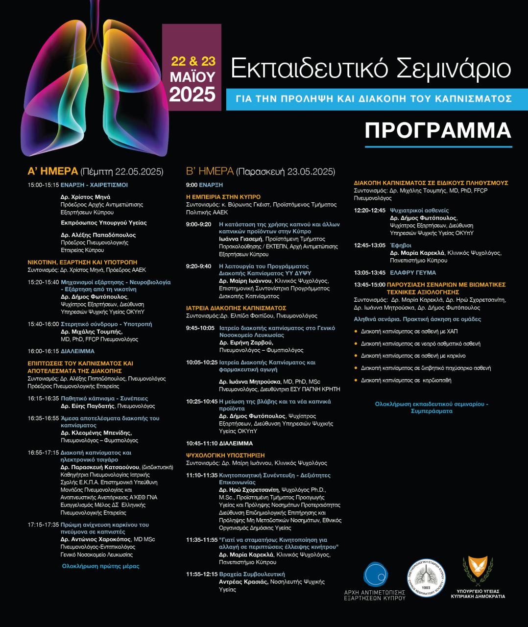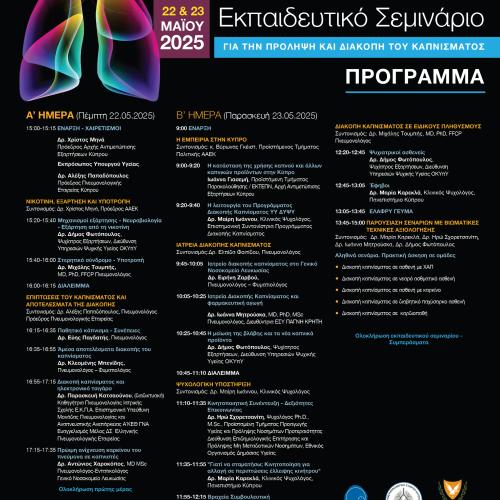 Εκπαιδευτικό σεμινάριο για την πρόληψη και διακοπή του καπνίσματος 22-23 Μαΐου 2025