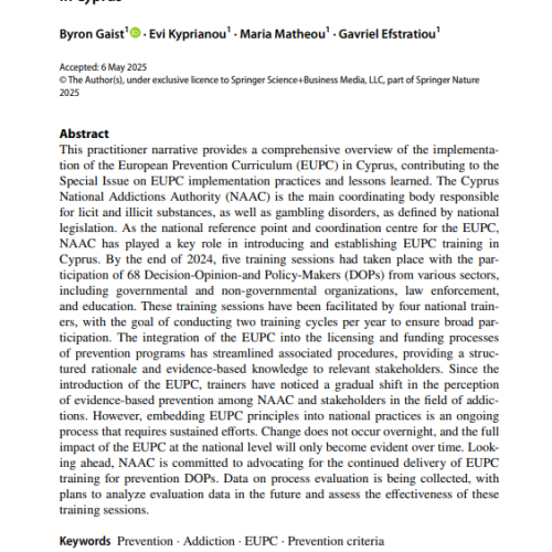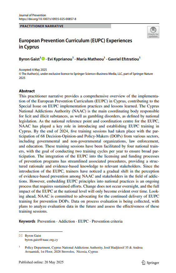 Διαβάστε το άρθρο που περιγράφει την εμπειρία της Κύπρου με το EUPC στο Journal of Prevention