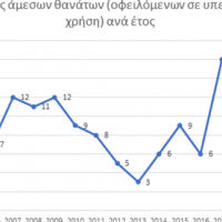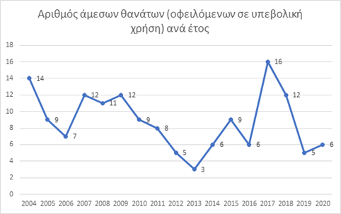 Σε ότι αφορά τη μέση ηλικία των θανόντων, για τα έτη 2004- 2019, αυτή ανήλθε στα 32,9 έτη ενώ οι πλείστοι θάνατοι αφορούσαν άντρες.