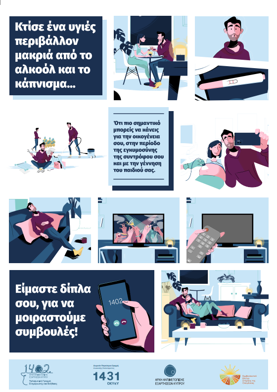 Μέσα στο πλαίσιο της Παγκόσμιας Ημέρας Ευαισθητοποίησης για το Σύνδρομο Εμβρυϊκού Αλκοολισμού και το Φάσμα Διαταραχής Εμβρυϊκού Αλκοολισμού που πραγματοποιείται σε διεθνές επίπεδο κάθε χρόνο στις 9 Σεπτεμβρίου, θα θέλαμε να σας ενημερώσουμε για την δημιουργία αφισών, για την έγκυο και για τον πατέρα αντίστοιχα, για διάχυση σε νοσηλευτήρια και θεραπευτικά προγράμματα όπως επίσης και τηλεοπτικά σποτ για τον υγιεινό τρόπο ζωής στην εγκυμοσύνη και κατά τη διάρκεια του θηλασμού και για τους πατέρες, τα οποία μπορείτε να παρακολουθήσετε στους ακόλουθους συνδέσμους, αλλά και να αναρτήσετε στην ιστοσελίδα ή και στα μέσα κοινωνικής δικτύωσης της υπηρεσίας/οργανισμού σας.
