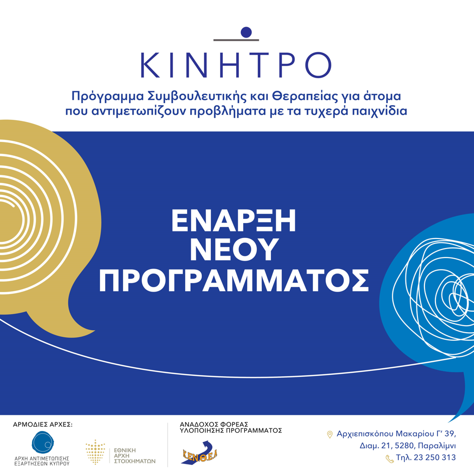 Πρόγραμμα Συμβουλευτικής και Θεραπείας για άτομα που αντιμετωπίζουν προβλήματα με τα τυχερά παιχνίδια "ΚΙΝΗΤΡΟ"