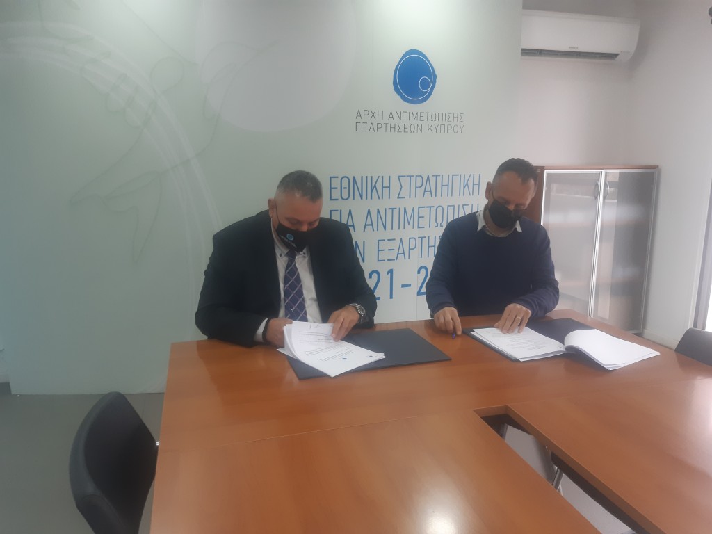 Πραγματοποιήθηκε στις 10 Μαρτίου 2022 στα γραφεία της Αρχής Αντιμετώπισης Εξαρτήσεων Κύπρου (ΑΑΕΚ), η υπογραφή της Σύμβασης χρηματοδότησης για τη «Λειτουργία Κέντρου Θεραπείας Εσωτερικής Διαμονής για Ανήλικους με Πρόβλημα Χρήσης Ουσιών Εξάρτησης», την οποία η ΑΑΕΚ ανάθεσε εκ νέου και κατόπιν διαγωνισμού, στο Ίδρυμα θεραπευτική κοινότητα «Αγία Σκέπη». Περισσότερα στην Ανακοίνωση Τύπου της ΑΑΕΚ στο σύνδεσμο εδώ.