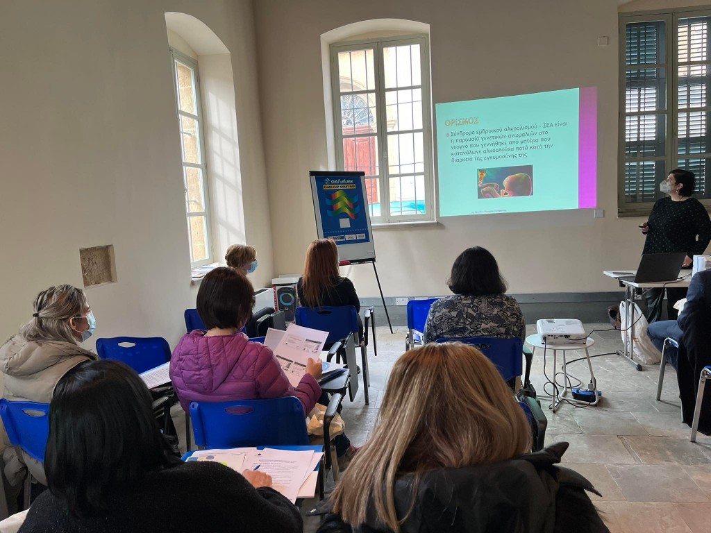 Μέσα στο πλαίσιο εφαρμογής του προληπτικού προγράμματος «Εκπαιδευτικό δίκτυο για επαγγελματίες: ΡΕΑ»  που υλοποιείται από το ΣΥΚΕΣΟ, διοργανώθηκε τριήμερο εκπαιδευτικό (29.03.22, 7-8.04.22) σε συνεργασία με την Αρχή Αντιμετώπισης Εξαρτήσεων Κύπρου ΑΑΕΚ, για 10 επαγγελματίες Μαίες/Μαιευτές, που θα αποτελέσουν τη διασυνδετική υπηρεσία για την εφαρμογή του πρωτοκόλλου για τον εντοπισμό και παραπομπή εγκύων ή θηλαζουσών μητέρων που καταναλώνουν αλκοόλ ή κάνουν χρήση ουσιών σε υποστηρικτικές υπηρεσίες. Απώτερος στόχος  είναι η πρόληψη, διάγνωση και θεραπεία του ΦΔΕΑ και ΣΕΑ και στήριξη των οικογενειών που επηρεάζονται από την κατανάλωση αλκοόλ ή τη χρήση ουσιών.